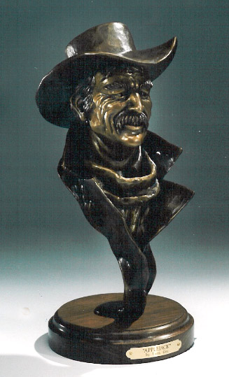 "AppleJack" This bronze depicts a man who was born in the old west and has worked cattle all his life. But he also has developed a knack for poker on Saturday nights, where he is heading right now. He has shaved, put on his best 'kerchief, clean shirt and is ready for some action in the saloon. It seems the older he gets the more he is drawn away from the hard work of the trail and has found an easier way to make a living. Approximately 22" tall with an edition of 20. Retail Price $1,475.00 |