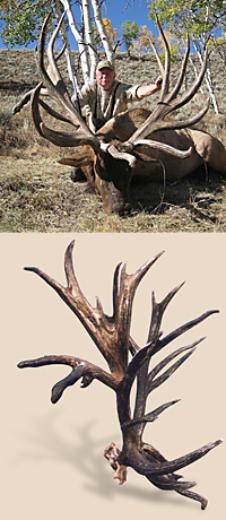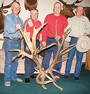Upper left is Denny Austad with the Spider Bull. Upper right is Team Mossback, with Doyle Moss, far right, who guided the hunt. At right is the B&C judges panel. From left to right are: Frederick J. King, Jack Reneau, Roger Atwood, and Eldon L. "Buck" Buckner. |