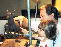 Pictured at right are Larry and his then two-year-old granddaughter, Holly. She has helped her "Papa" sculpt ever since she can remember. She has been around it so much that one of her very first words was "elk."