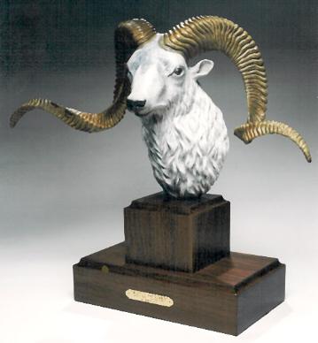 "Gentle Defender" This is a bust of a Marco-Polo sheep. This is a very elusive creature and lives on the border between Pakistan and Afghanistan, way up in the highest mountains. This is approximately 20" wide and 20" tall with an edition size of only 10. $4000 US |