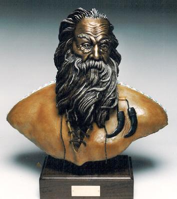 "Jeremiah Two-Claws" In 1858 in the Crazy Woman Mountains of Montana lived a trapper by the name of Jeremiah McKenna. He came upon the bodies of three young Sioux braves who had been killed by a large grizzly bear. In the battle the young men had wounded the giant by cutting off three claws of a front paw. Jeremiah set out, trapped the bear, and returned the hide to the village to avenge their brave deaths. The Sioux were so thankful that they made him a member of the tribe, gave him the other two claws to wear as a badge of honor and changed his name to "Two-Claws". "He was born as Jeremiah, But the Sioux, they canged his name; Because of what he did for them, It's "Two-Claws" he'll remain." Retail Price $3500.00 |