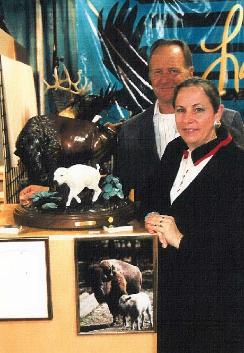 "Miracle and Mother" This bronze is the only authorized bronze casting of the white buffalo calf, Miracle, born August 20, 1994, in Janesville, WI. It is 20" diameter and approximately 15" tall. The edition is limited to 35. $6500 US |